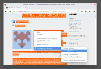 RemoveCrop-to Selection은 사용자가 콘텐츠를 선택적으로 자를 수 있도록 하여 웹 페이지 인쇄 및 저장을 향상시키기 위해 설계된 Firefox 애드온입니다. 사용자는 텍스트 및 이미지와 같은 웹 페이지의 특정 섹션을 강조 표시하고 원하지 않는 부분을 제거하거나 선택한 콘텐츠만 유지하도록 선택할 수 있습니다. 이 도구는 모든 수정이 로컬 및 임시적임을 보장하여 영구적인 변경 없이 원본 웹 페이지를 쉽게 다시 로드할 수 있도록 합니다.